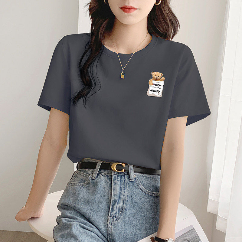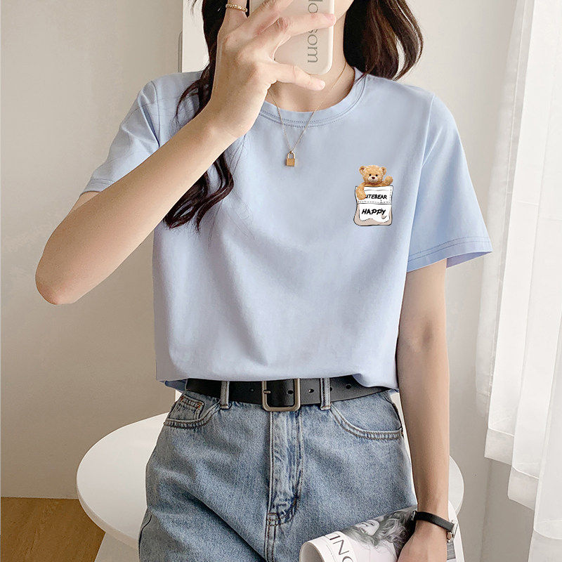 奶黄t恤女短袖 韩版 夏装 外穿百搭体恤 宽松棉质正肩上衣服2026新款
