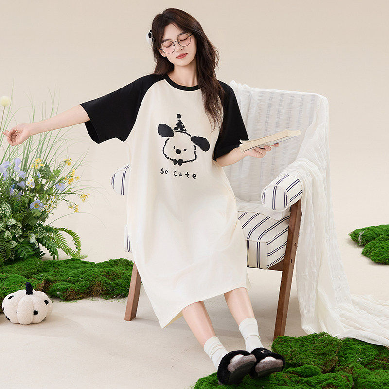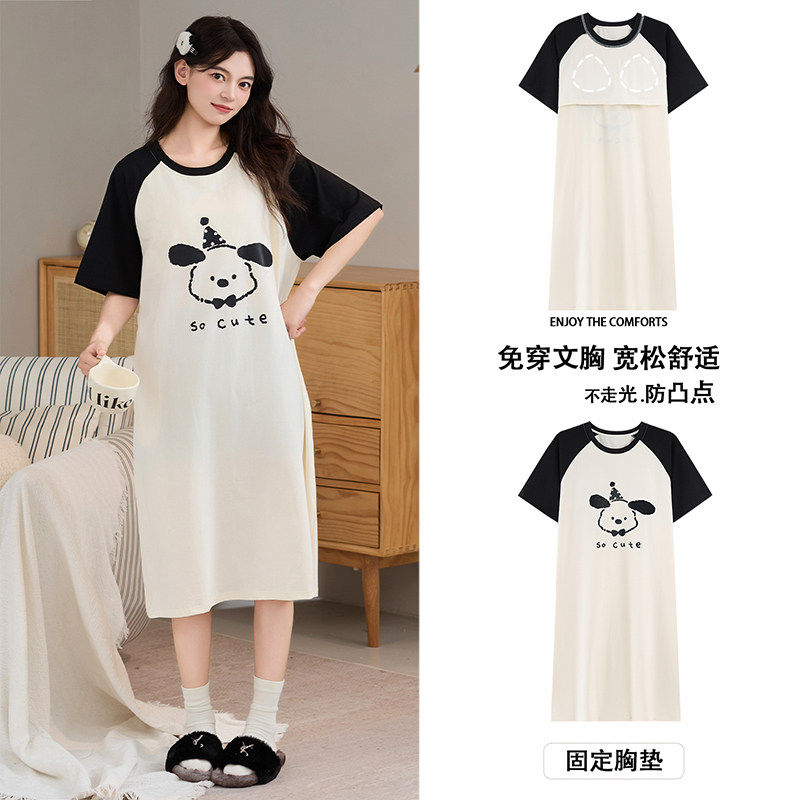 为您提供商品带胸垫7A类95纯棉大码 春夏2026新款 胖mm孕妇睡衣短袖 弹力 睡裙女款的详细介绍,