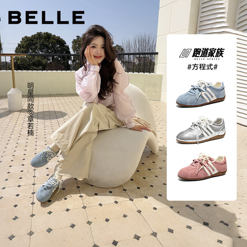 男女新款 张凌赫同款 百丽跑道方程式 赛车芭蕾德训鞋 子预 网面休闲鞋