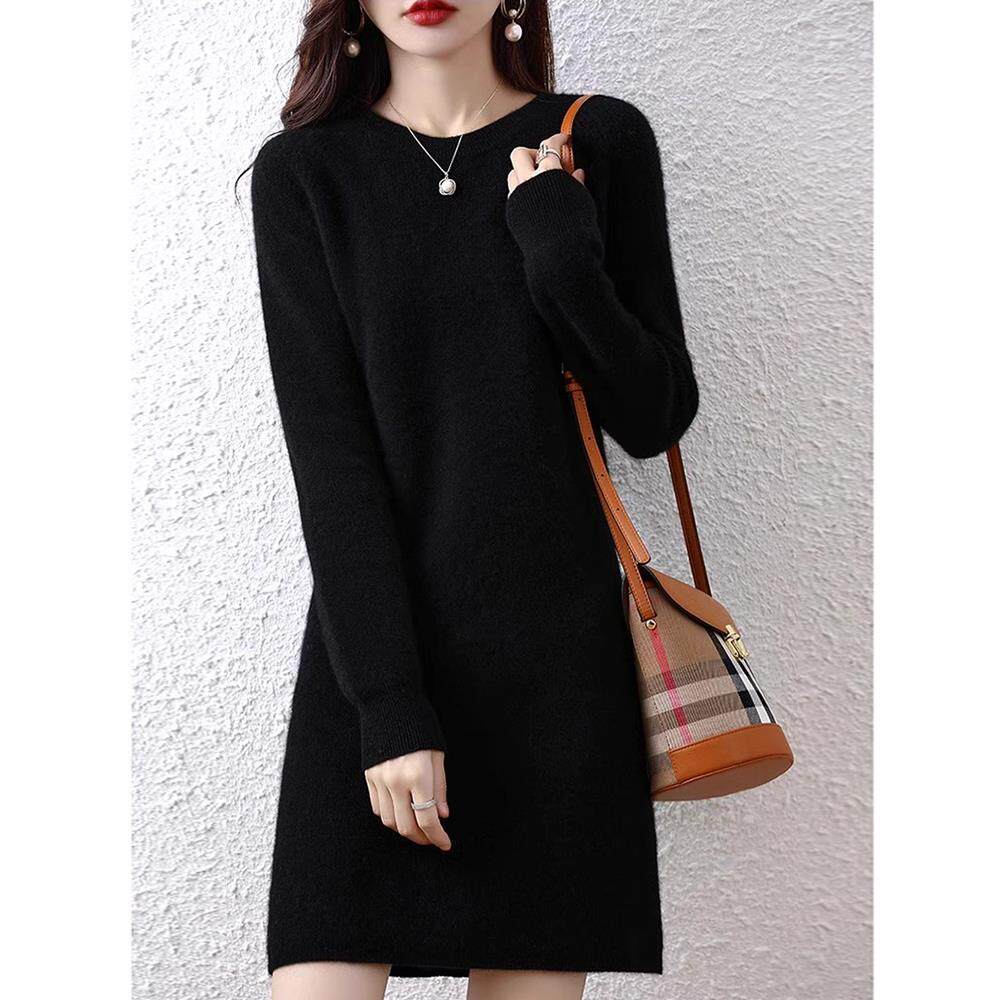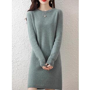 显瘦毛衣裙中长款 包臀打底裙 圆领羊毛针织连衣裙女宽松大码 春秋款由