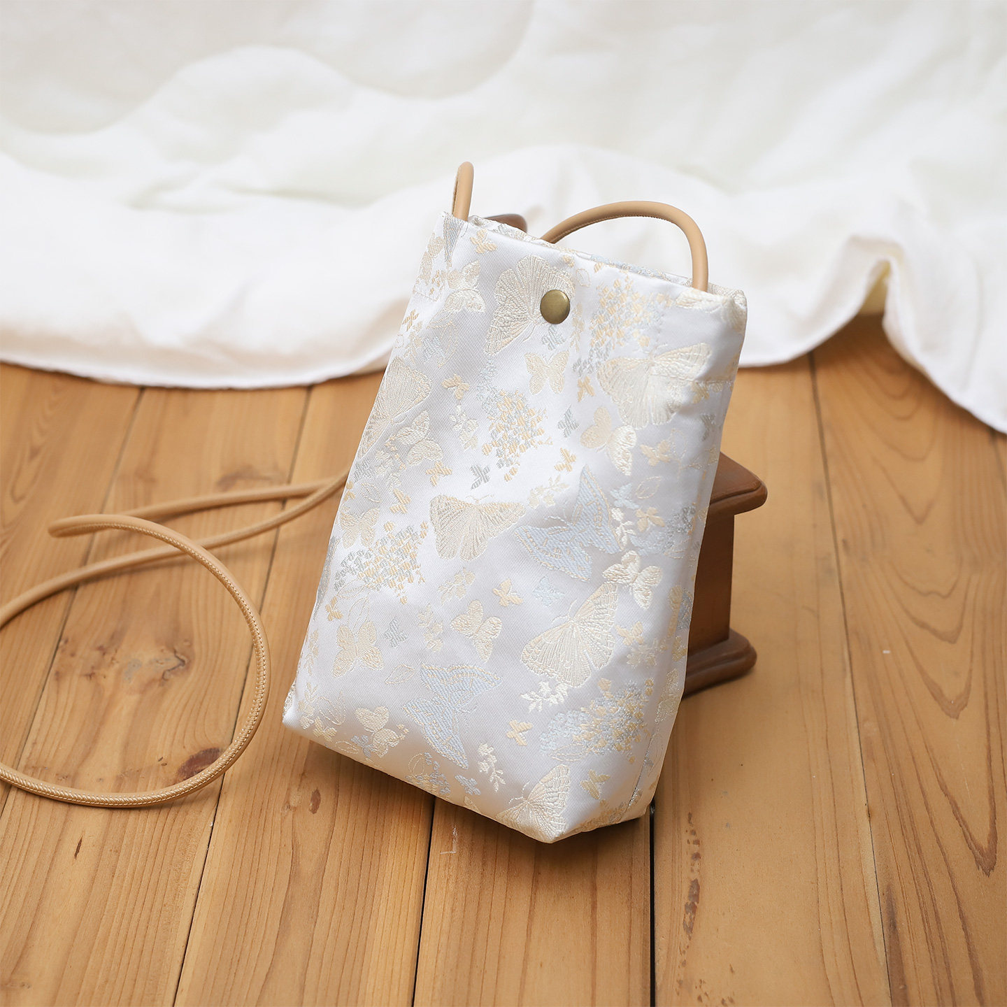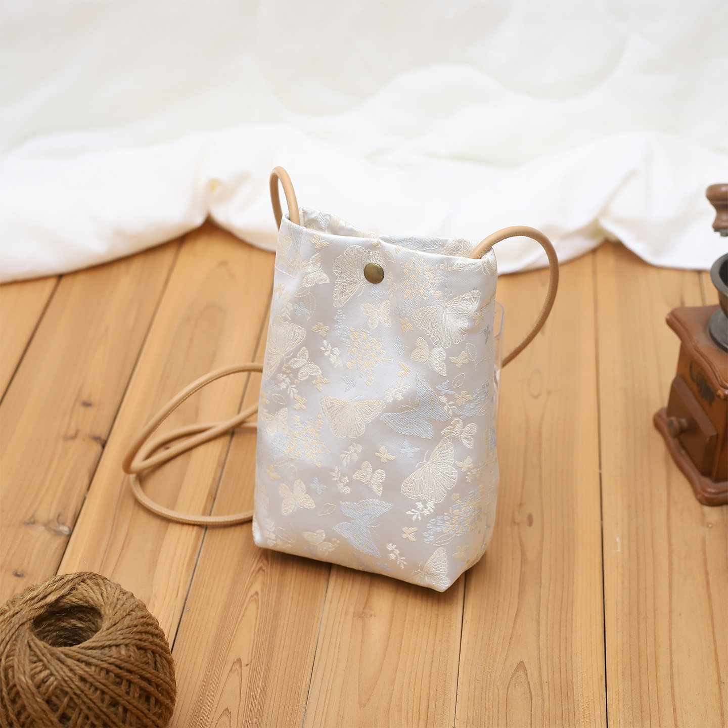 蝴蝶新款 磁扣斜挎包轻便散步布包 2026春夏迷你小包手机包女竖款