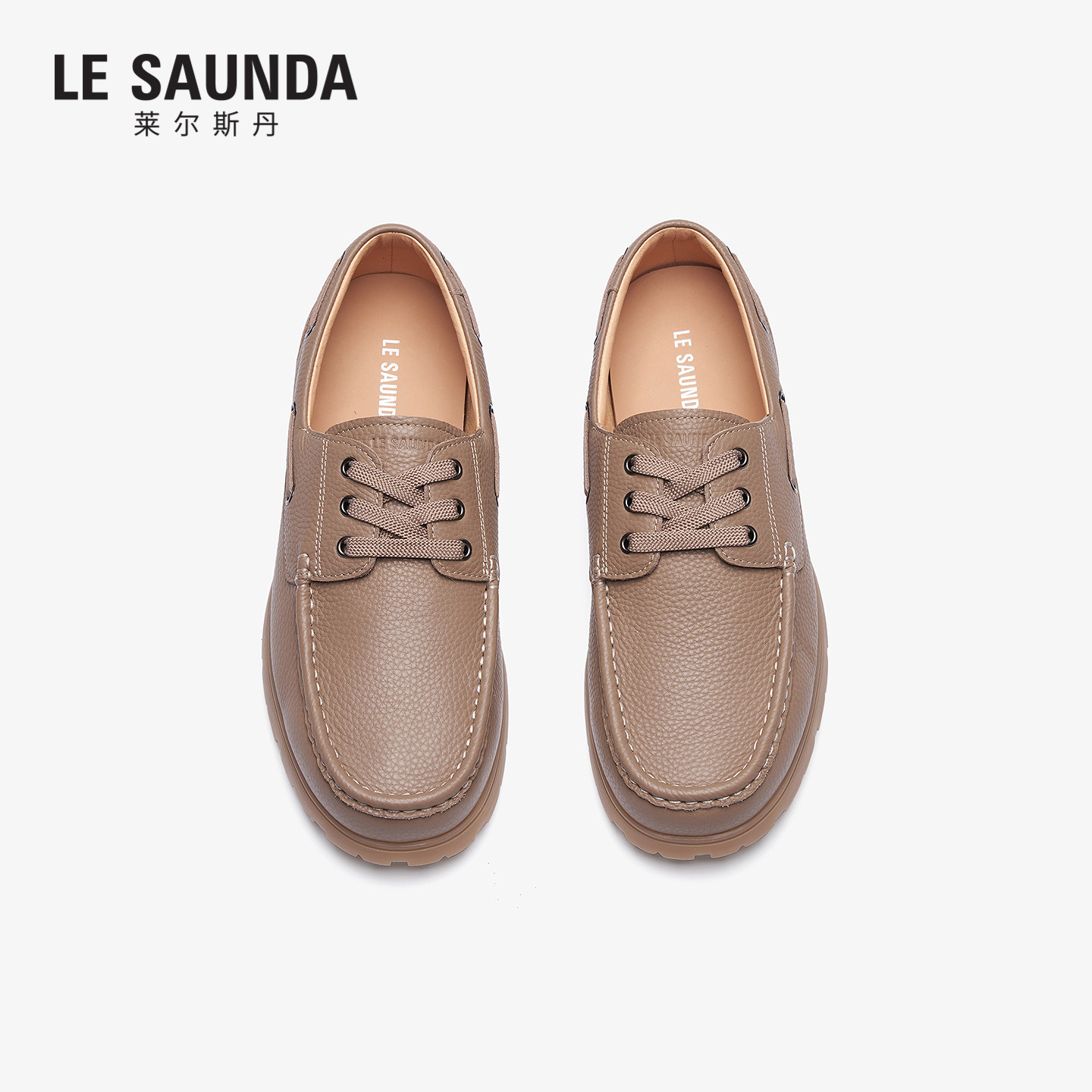 莱尔斯丹2026春季 休闲系带棕色真皮男士 豆豆乐福男鞋 7MM89102 新款由