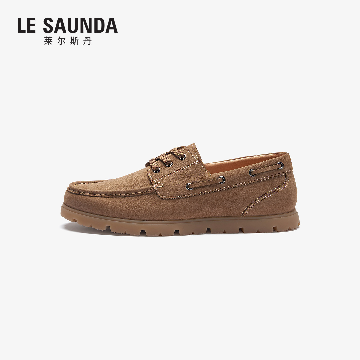 莱尔斯丹2026春季 休闲系带棕色真皮男士 豆豆乐福男鞋 7MM89102 新款