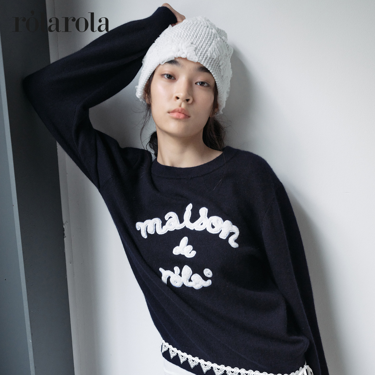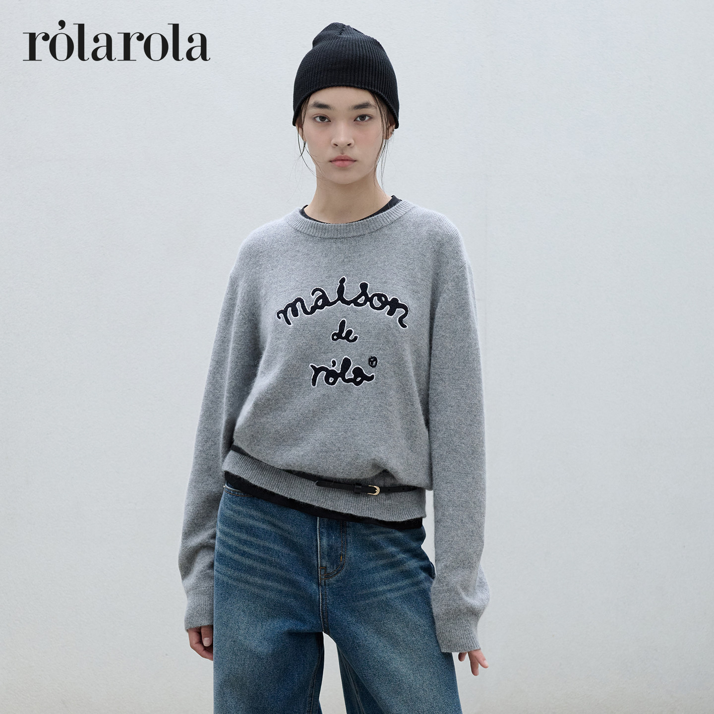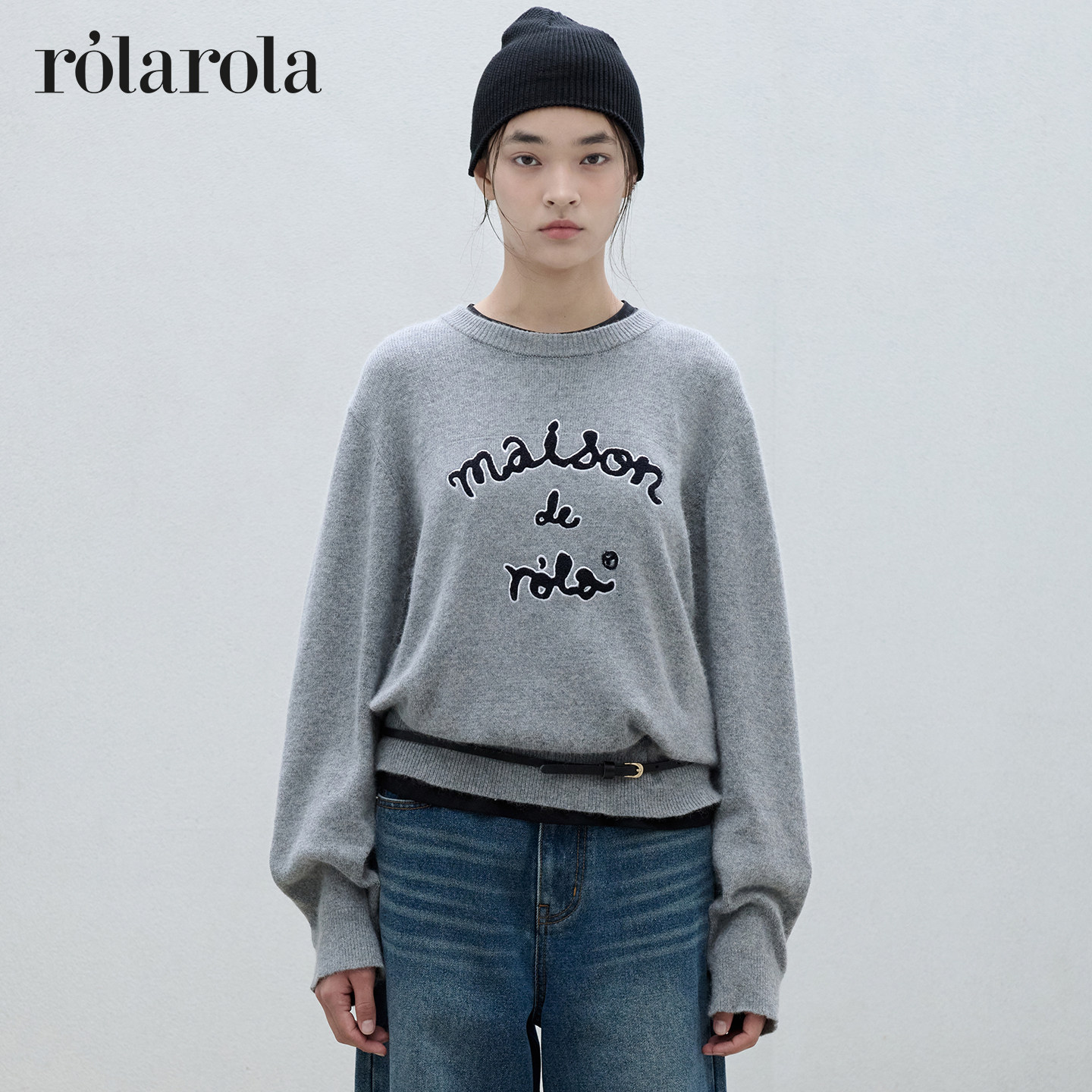 ROLAROLA20经典 张元 英同款 复古圆领宽松百搭毛衣 字母针织衫