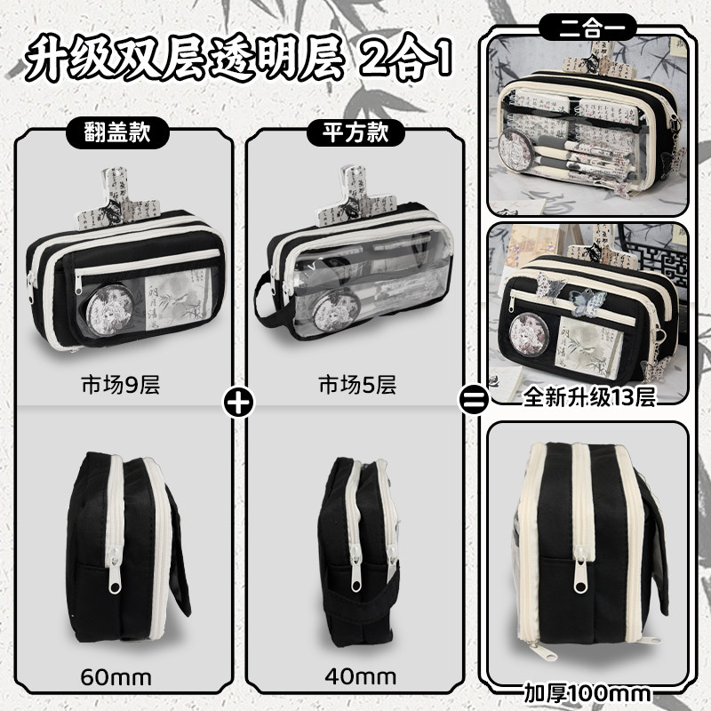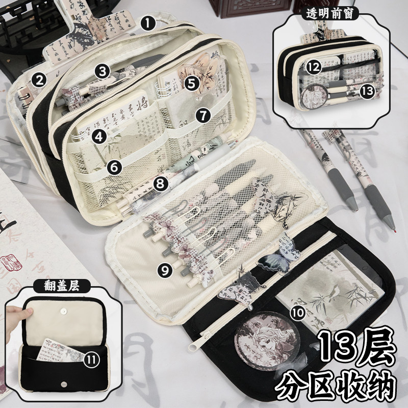 为您提供商品13层国风笔袋水墨风文具套装 女生高颜值ins风文具盒女孩小学生大容量透明铅笔盒初中男孩文具袋古风 2026新款的详细介绍,