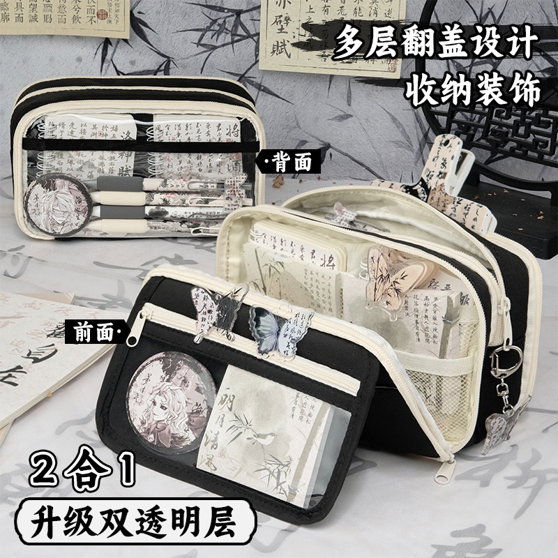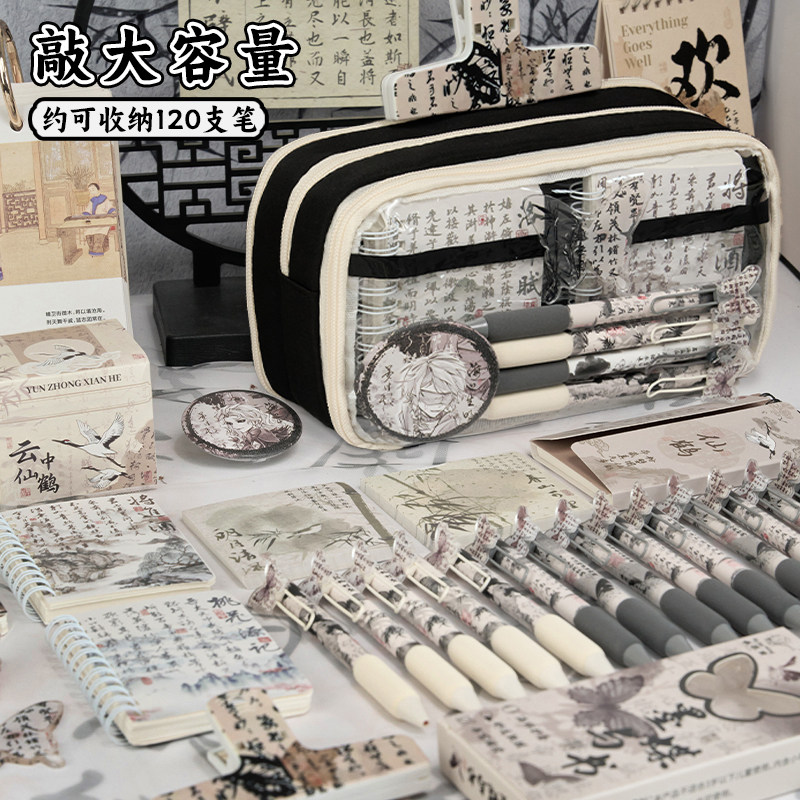 13层国风笔袋水墨风文具套装 女生高颜值ins风文具盒女孩小学生大容量透明铅笔盒初中男孩文具袋古风 2026新款