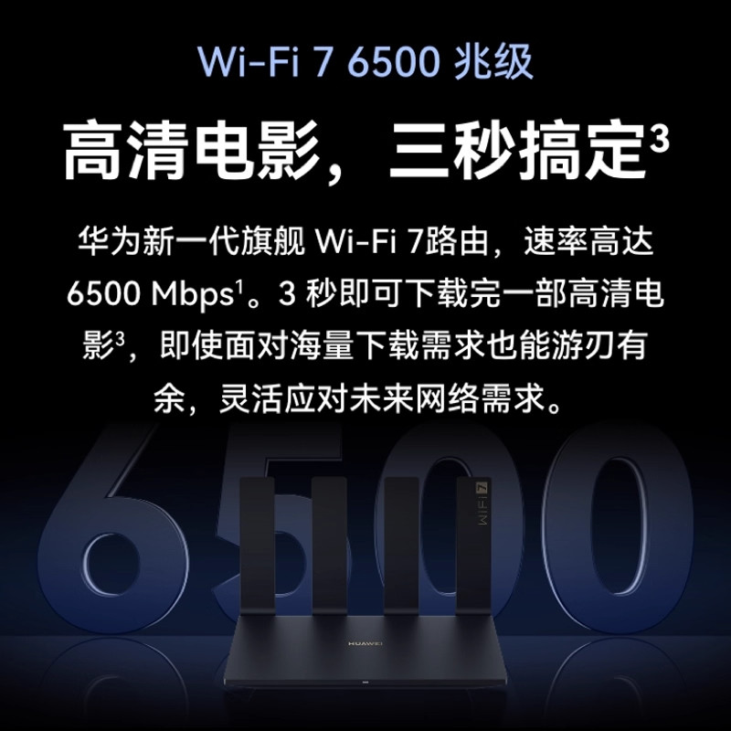 WiFi7 华为WIFI7路由BE7Pro路由器旗舰6500M家用高速千兆全屋覆盖无线wifi光纤双频2.5G网口官方正品由