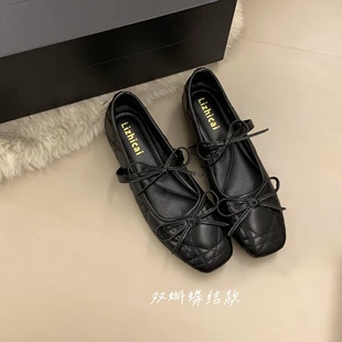 2026春新款 真皮 骄屿法式 复古波点玛丽珍鞋 黑色通勤浅口芭蕾单鞋