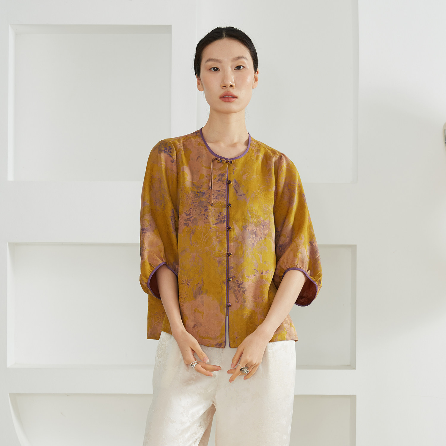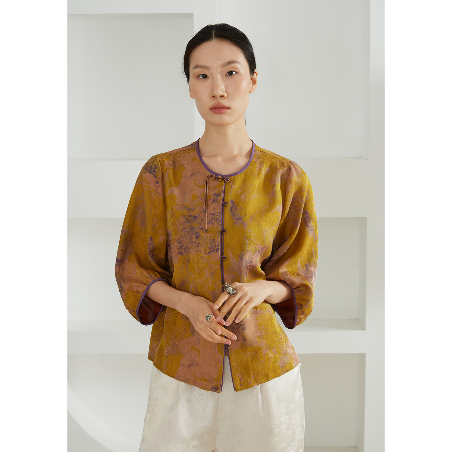为您提供商品女100%桑蚕丝新中式 一丝牵 国风香云纱圆领七分袖 上衣开衫 春 小衫的详细介绍,