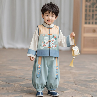 汉服男童古风套装 男孩新中式 国风古装 小少爷男宝演出服春 儿童唐装