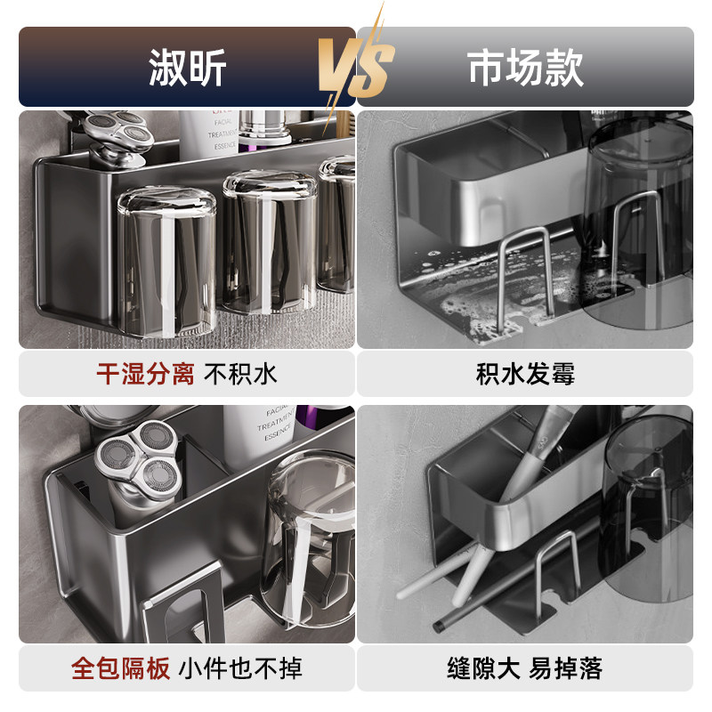 免打孔卫生间牙具座牙膏收纳浴室 牙刷牙杯壁挂置物架电动牙刷套装
