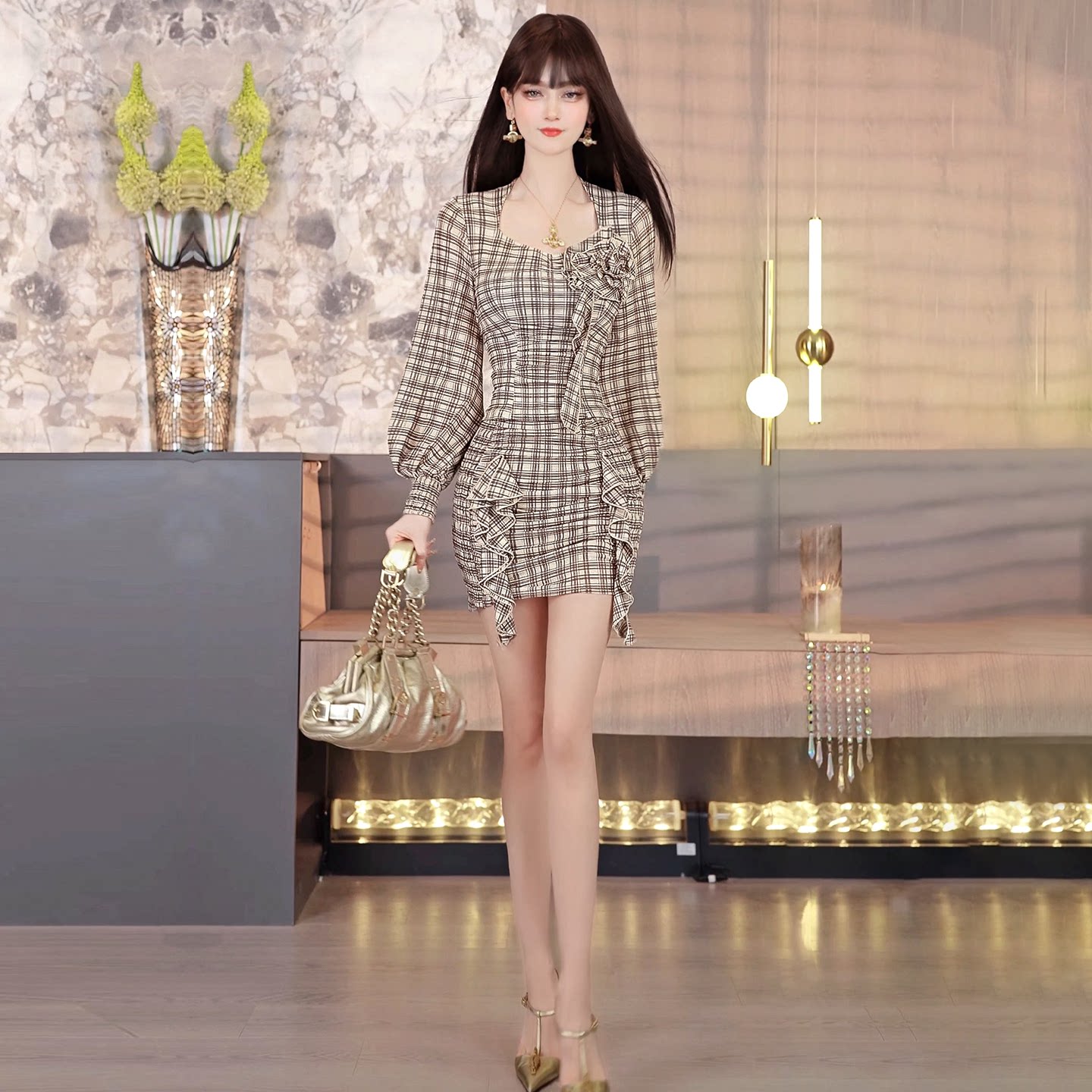 为您提供商品春季 裙2026新款 时尚 花朵造型上衣高腰短裙两件套 格纹气质减龄套装的详细介绍,