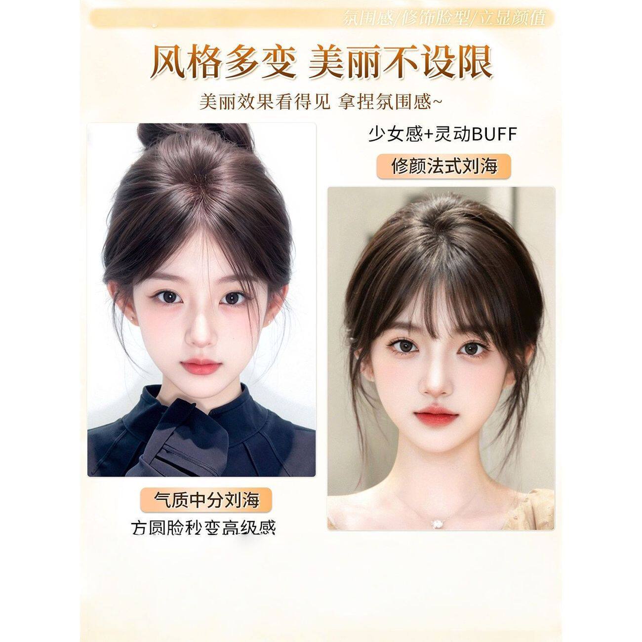 刘海假发女片头顶全真发法式 刘海片 空气假刘海自然前额无痕轻薄款