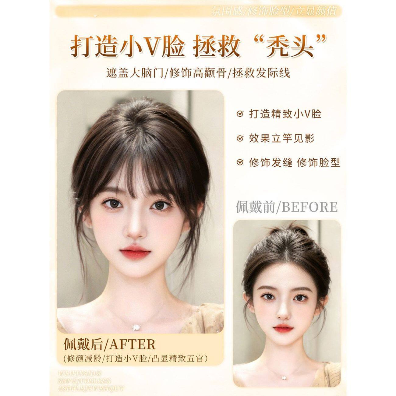 刘海片假发片女自然前额刘海补发片头顶遮白发增发量蓬松假发片