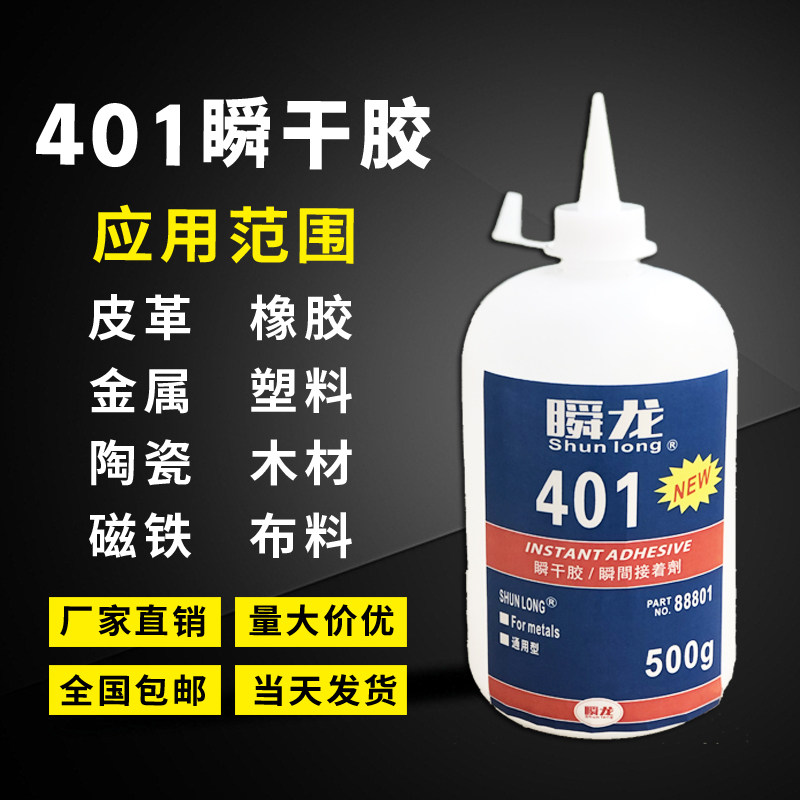 大瓶401胶水无白化粘金属塑料橡胶木材502强力快干稠胶粘织带500g由