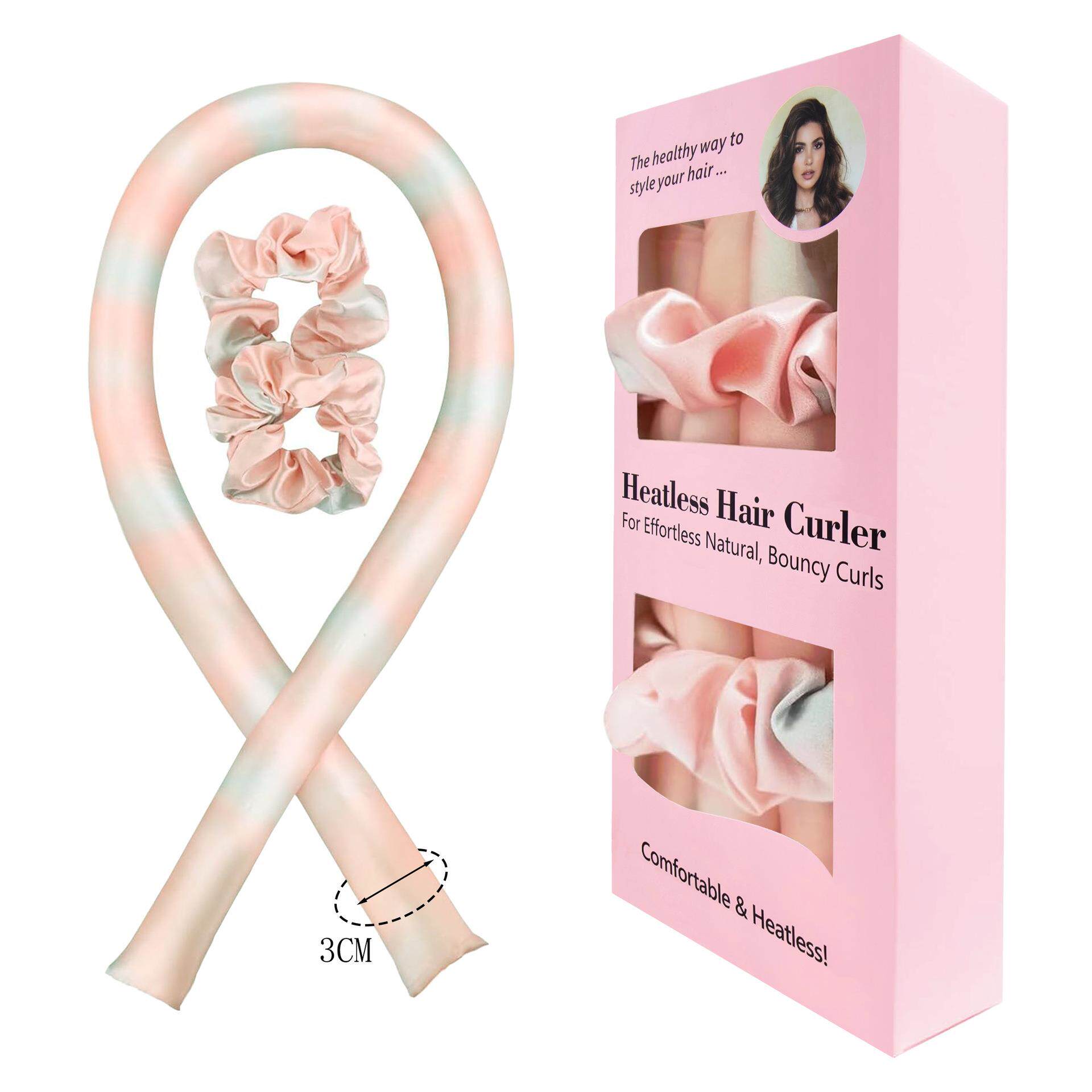 新款 色丁扎染无热懒人睡眠卷发棒充棉卷发器盘发器 丝绵卷发棒套装