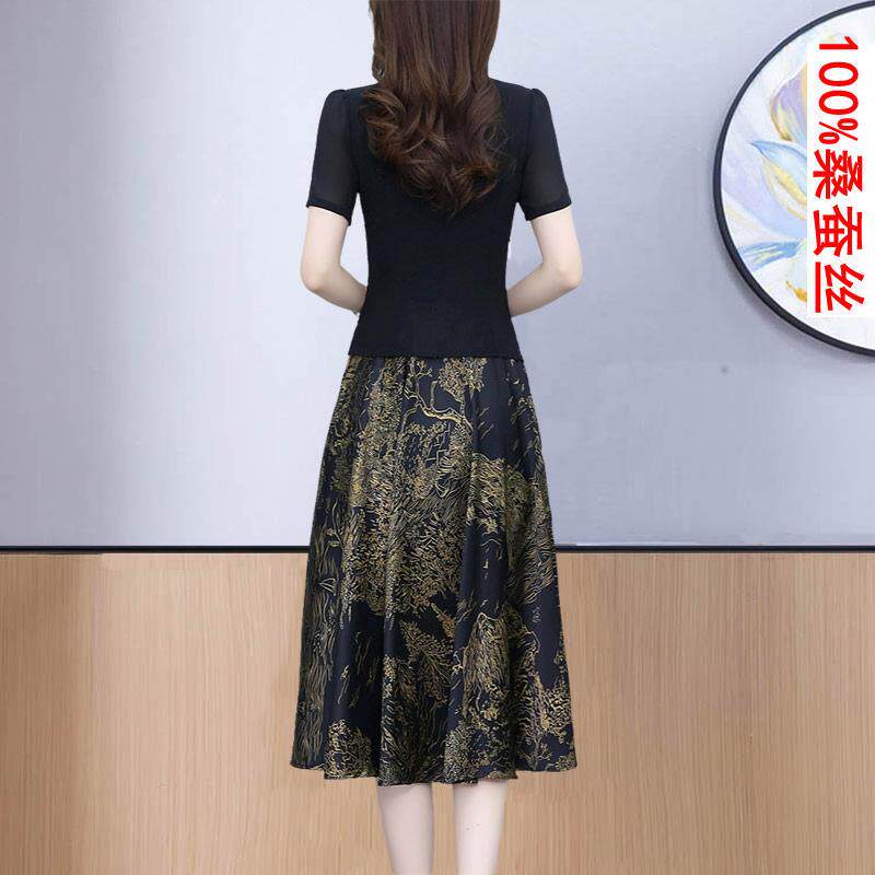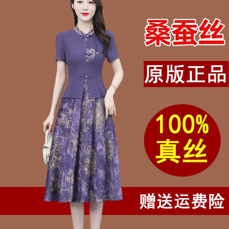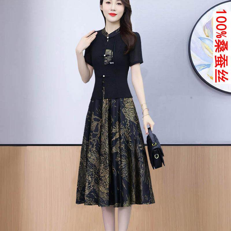 真丝洋装 国风中年香云纱假两件套裙子 女夏高端品牌桑蚕丝新中式由