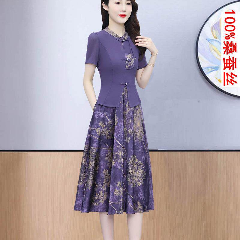 为您提供商品真丝洋装 国风中年香云纱假两件套裙子 女夏高端品牌桑蚕丝新中式的详细介绍,