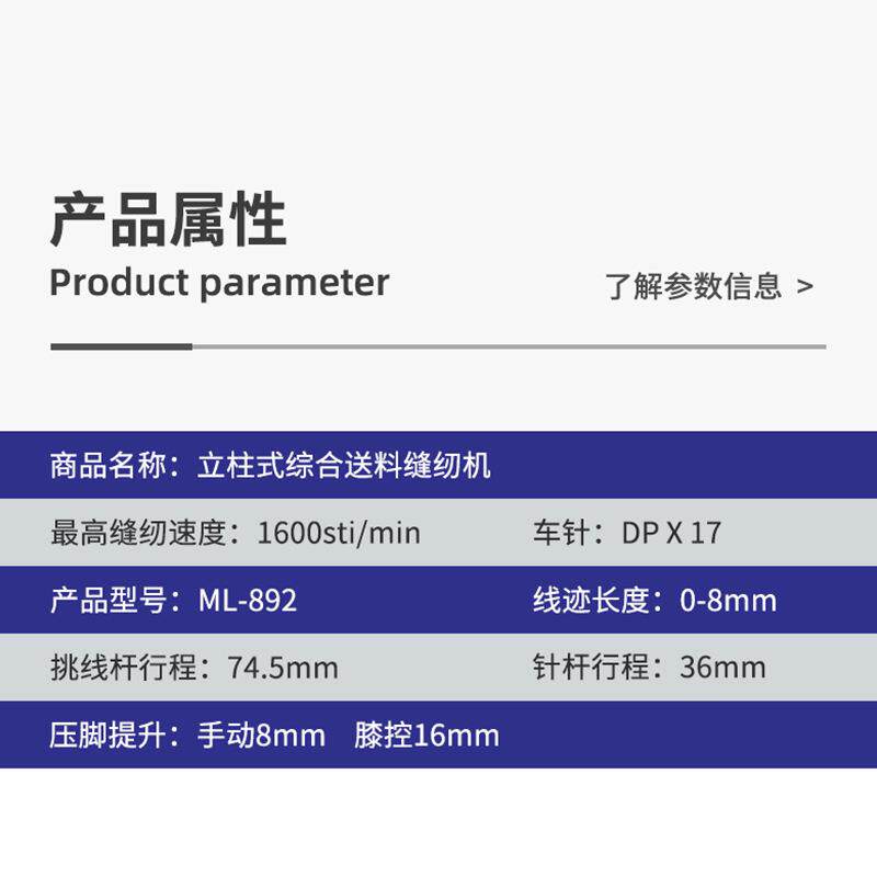 为您提供商品立柱式 头底边缝合接口设备 综合送料缝纫机手提箱包旅行袋文件袋鞋的详细介绍,