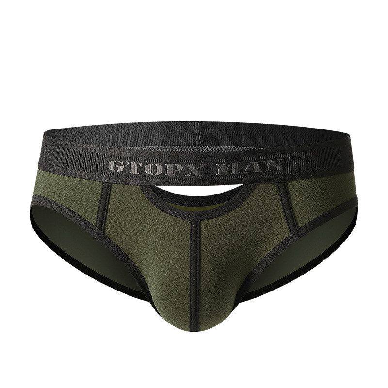 GTOPX男士 内裤 时尚 潮流 低腰透气前后开孔U凸欧美跨境纯色棉三角裤