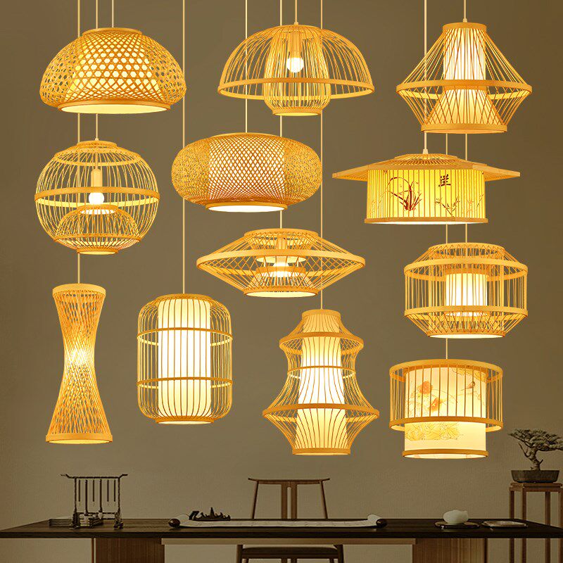 竹编吊灯新中式 竹艺灯 竹编灯禅意茶室餐厅竹制灯手工编织竹灯日式