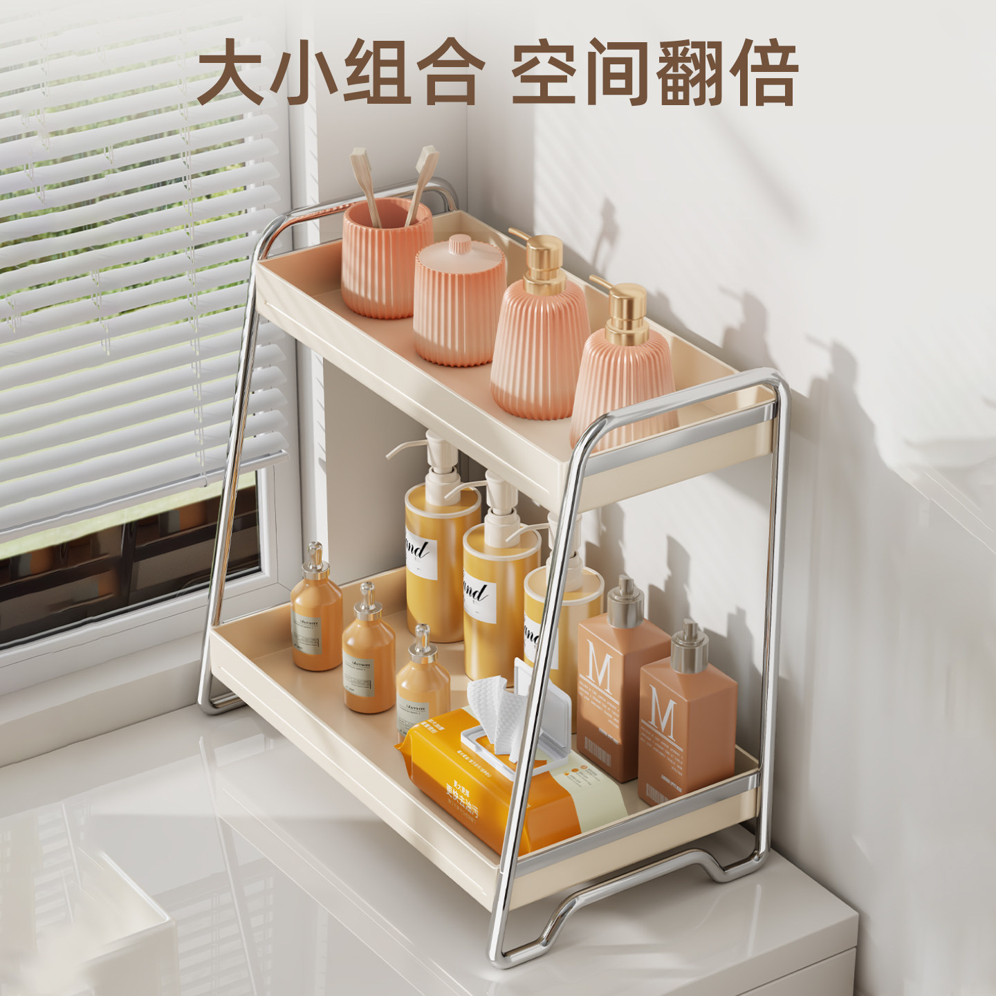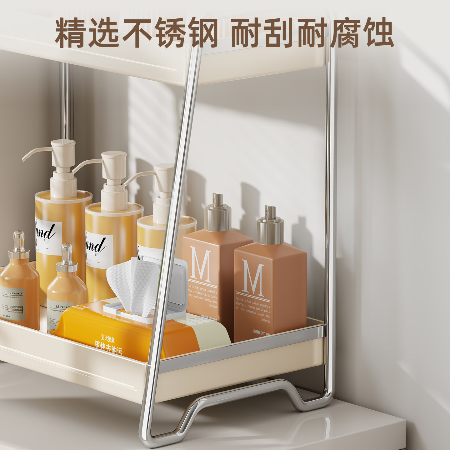 不锈钢置物架收纳架桌面浴室台面化妆品整理架子多功能沥水架新款
