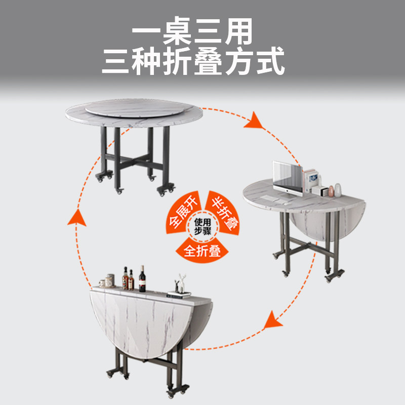 折叠餐桌家用小户型圆桌转盘饭桌省空间多功能可移动圆形吃饭桌子由