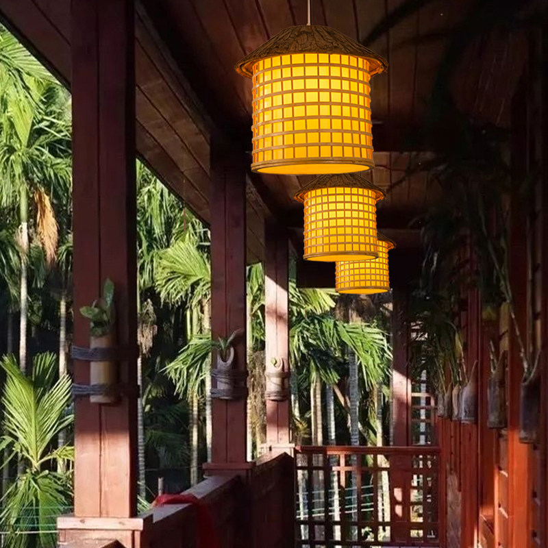 竹编吊灯新中式 竹艺灯笼民宿仿古灯罩 灯饰藤编禅意茶室餐厅灯日式