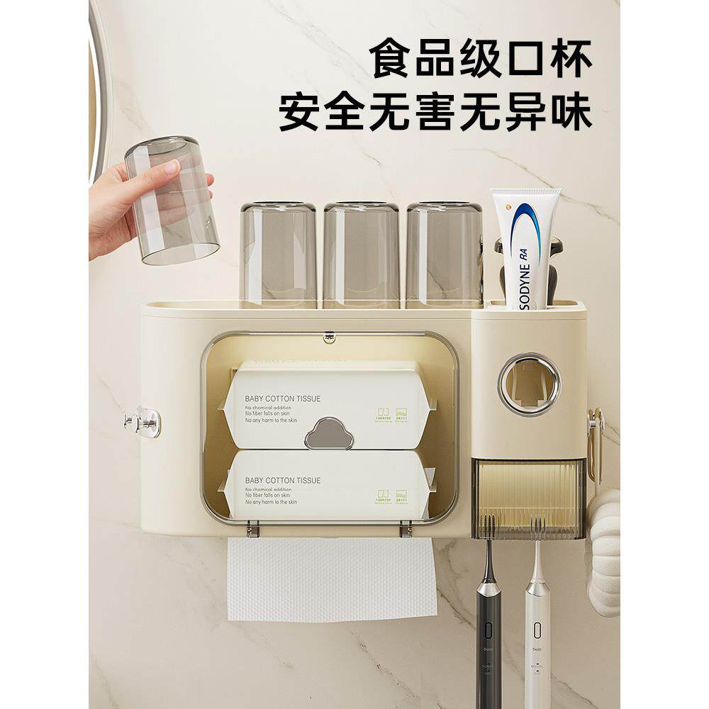 免打孔卫生间牙具座牙膏收纳浴室 牙刷牙杯壁挂置物架电动牙刷套装
