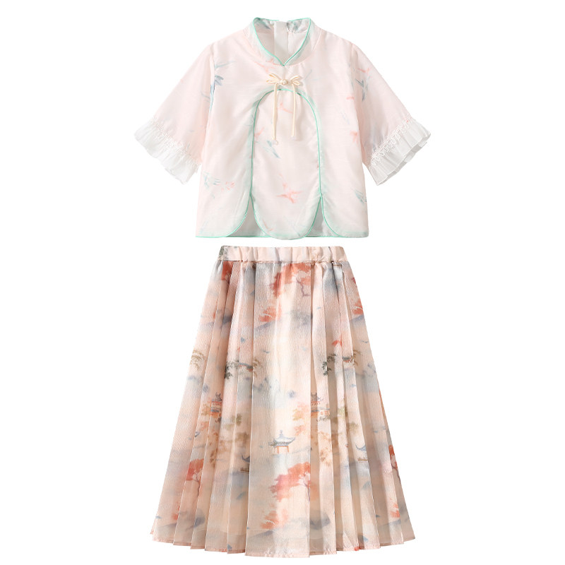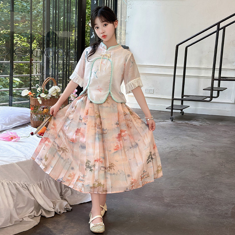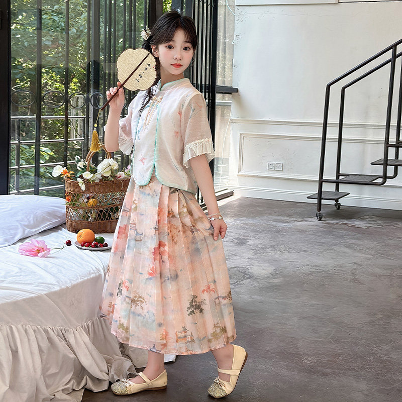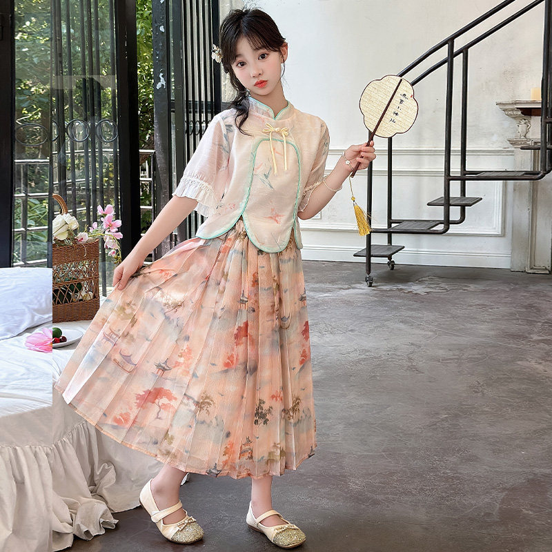 夏装 女童夏季 潮 两件套儿童新中式 中大童洋气时尚 套装 外穿2026新款