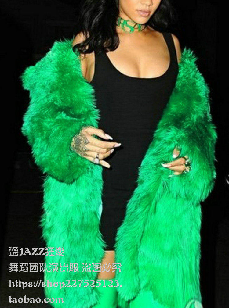 夜店男女歌手DJ大红绿色秋冬外套毛毛风衣舞台嘉宾演出服 欧美新款由