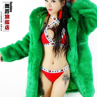 夜店男女歌手DJ大红绿色秋冬外套毛毛风衣舞台嘉宾演出服 欧美新款