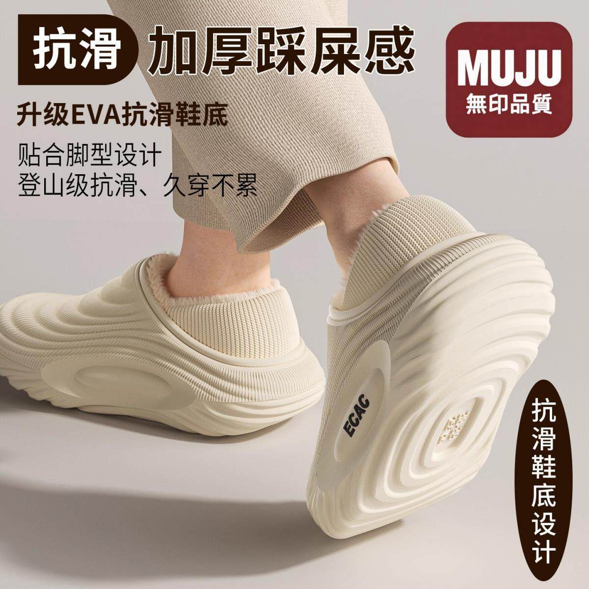 外穿2025新款 日本MUJU无印男士 棉拖鞋 冬季 女 包跟保暖加绒加厚棉鞋由