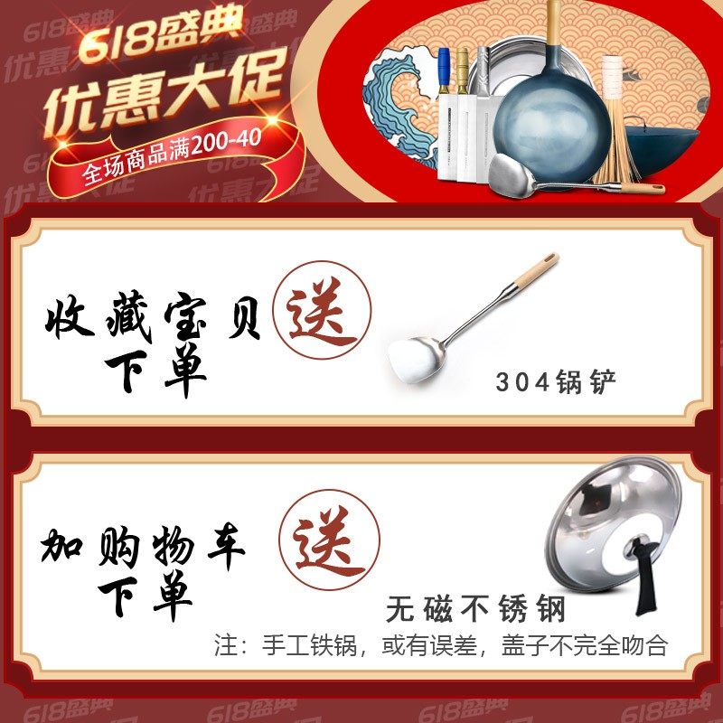 炒锅家用不粘锅无涂层燃气灶适用 章丘炒菜锅传统铁锅官方旗舰老式