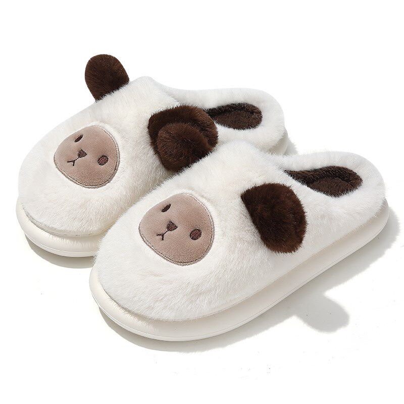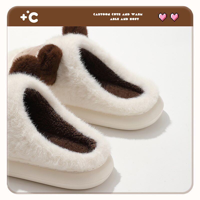 ins男女时尚 细细条 情侣棉拖鞋 可爱小狗冬季 百搭防滑居家月子棉鞋