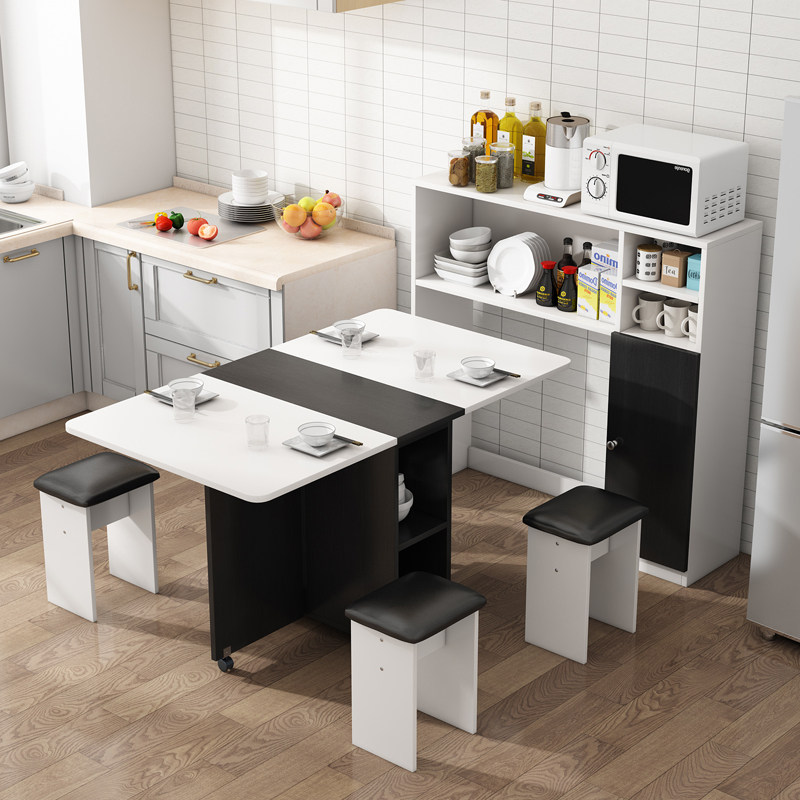 为您提供商品多功能伸缩餐桌椅 折叠餐桌小户型可移动餐桌边柜组合微波炉柜时尚的详细介绍,