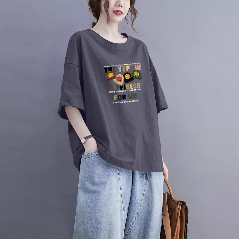 内搭打底衫 棉棉印象 上衣 夏季 t恤女宽松大码 美式 印花复古短袖