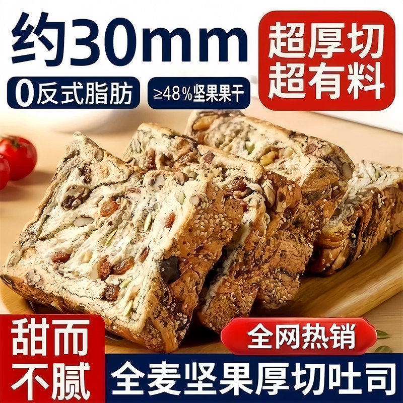 早餐解馋速食整箱 全麦坚果厚切吐司手撕面包早餐代餐饱腹独立包装由