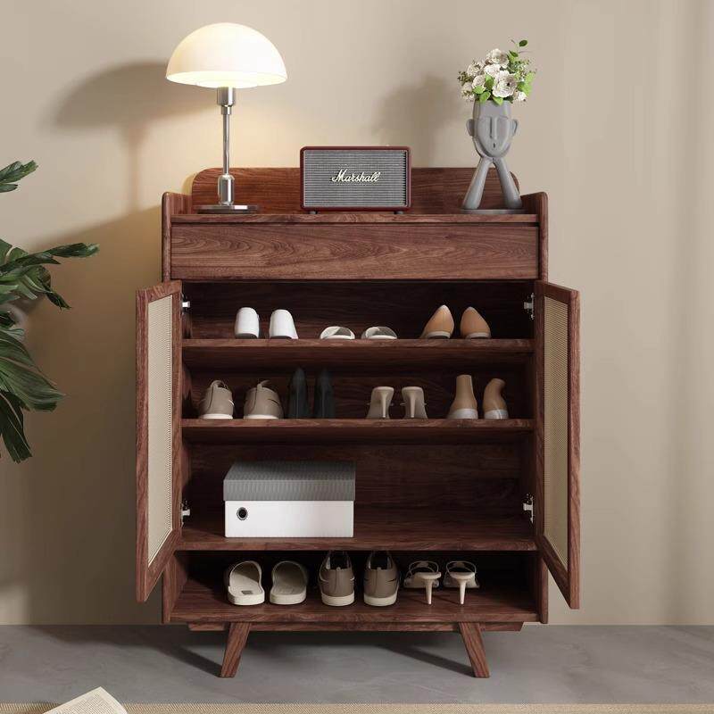 柜宋代美学藤编门口玄关柜小户型多功能收纳柜组合 南美胡桃木鞋由