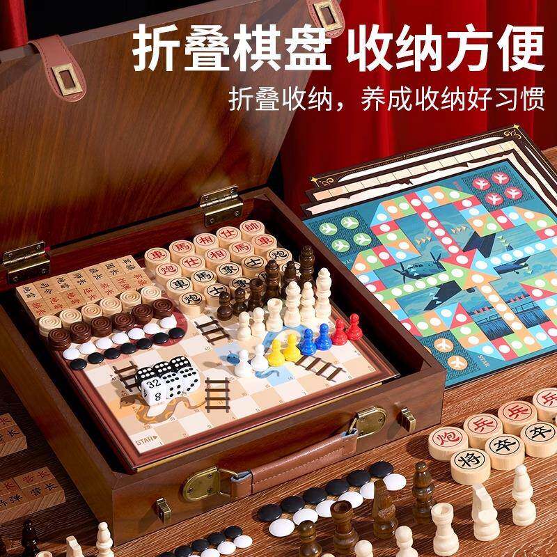 儿童益智玩具磁性多功能棋盘合一飞行棋五子围棋象棋木质儿童礼品