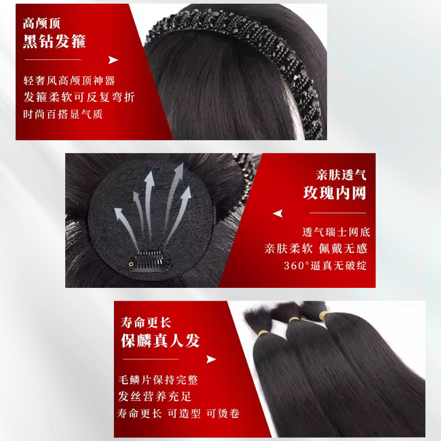 刘海片 高颅顶假发片女增发量蓬松真发遮头顶白发 双递针法式 美禾