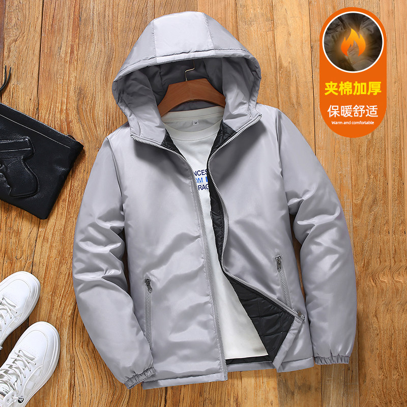 外贸单 户外运动防风防泼水纯色棉衣外套男休闲宽松连帽棉服 冬季