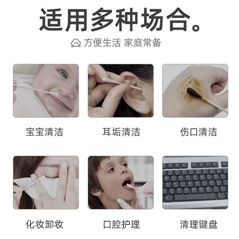 稳健医用棉签家用化妆消毒医疗棉球棉签一次性清洁掏耳朵双头无菌