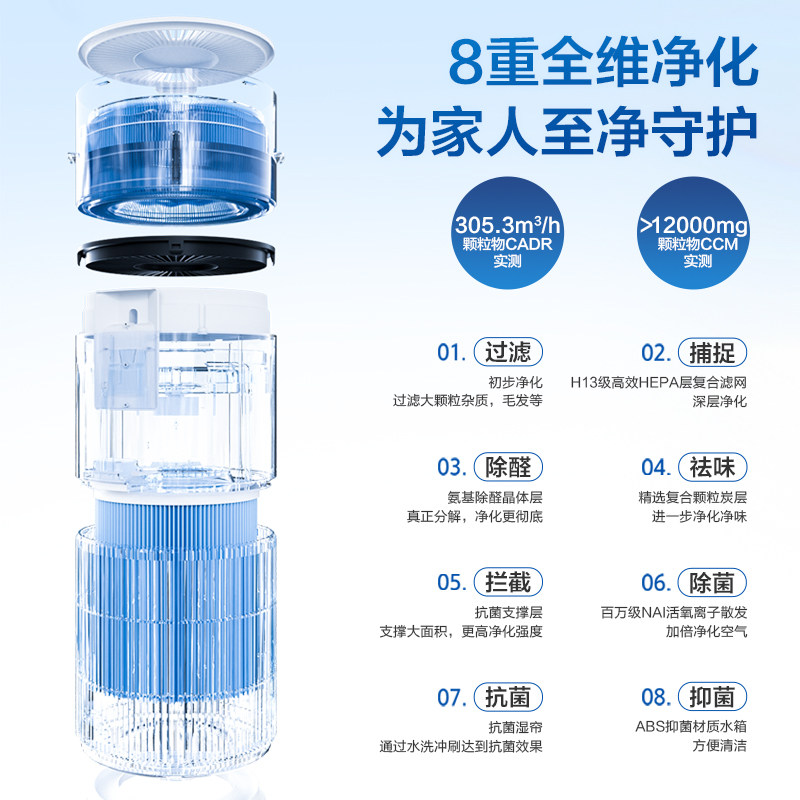 R8空气净化器家用除甲醛花粉过敏原宠物吸猫毛加湿净化一体机 美