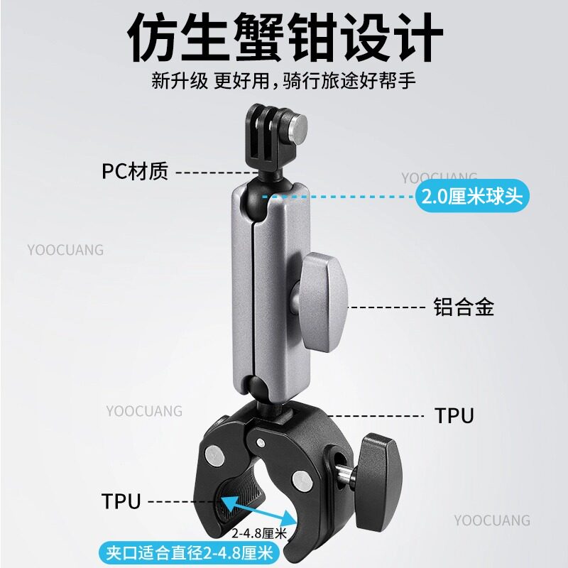 大力夹适合Dji大疆OSMO 360配件自行车支架配件 360全景相机户外骑行车把固定支架摩托管夹大疆全景相机osmo由