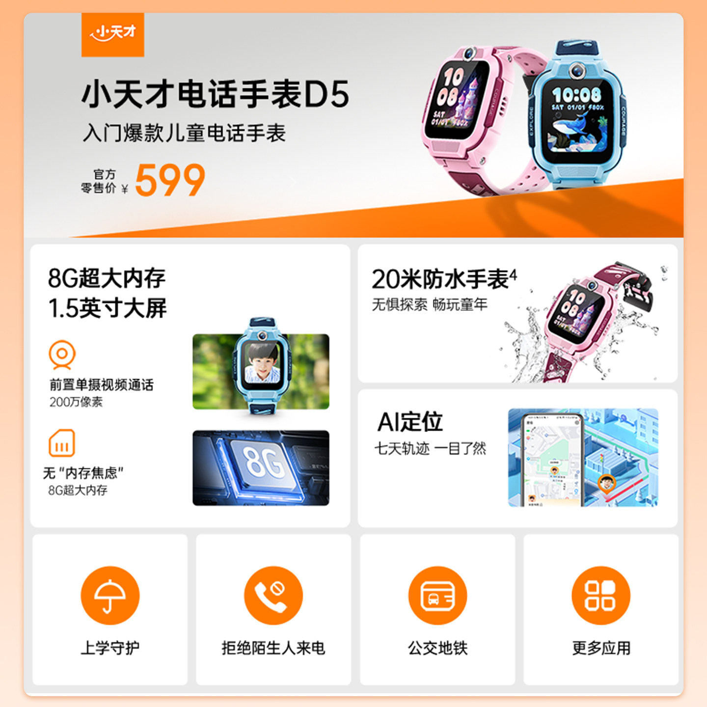 为您提供商品小天才电话手表D5小天才儿童手表4G全网通高清视频通话精准定位智能儿童手表8G超大内存 国补立减15%的详细介绍,