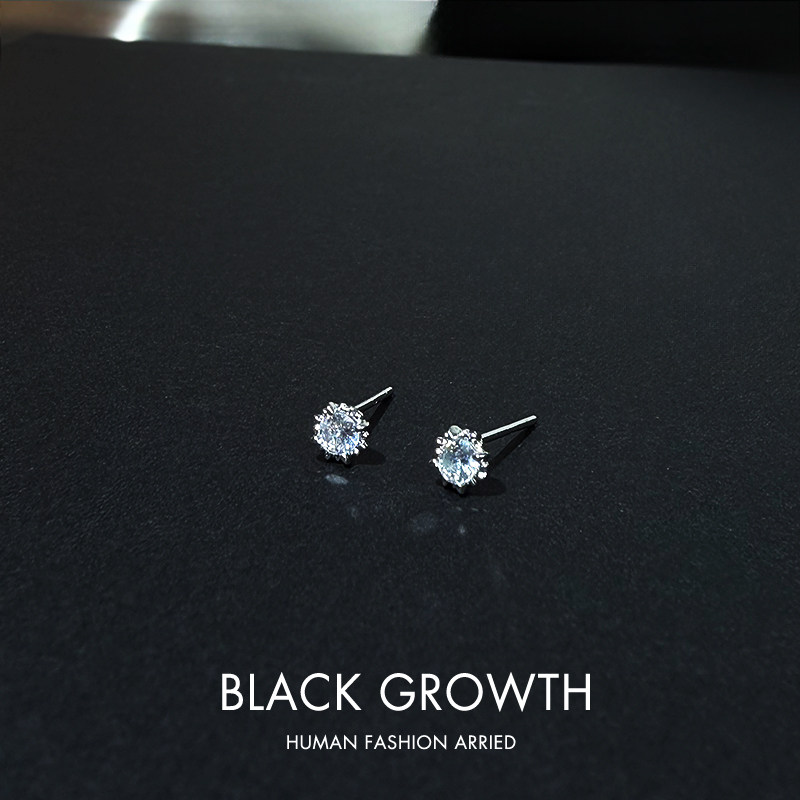 999纯银耳钉女养耳洞耳骨钉小众高级感锆石耳蜗钉水钻耳环银耳饰