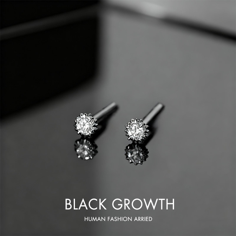 2025年新迷你欧美高级感嘻哈气质潮酷女耳饰 太阳花锆石小耳钉男款