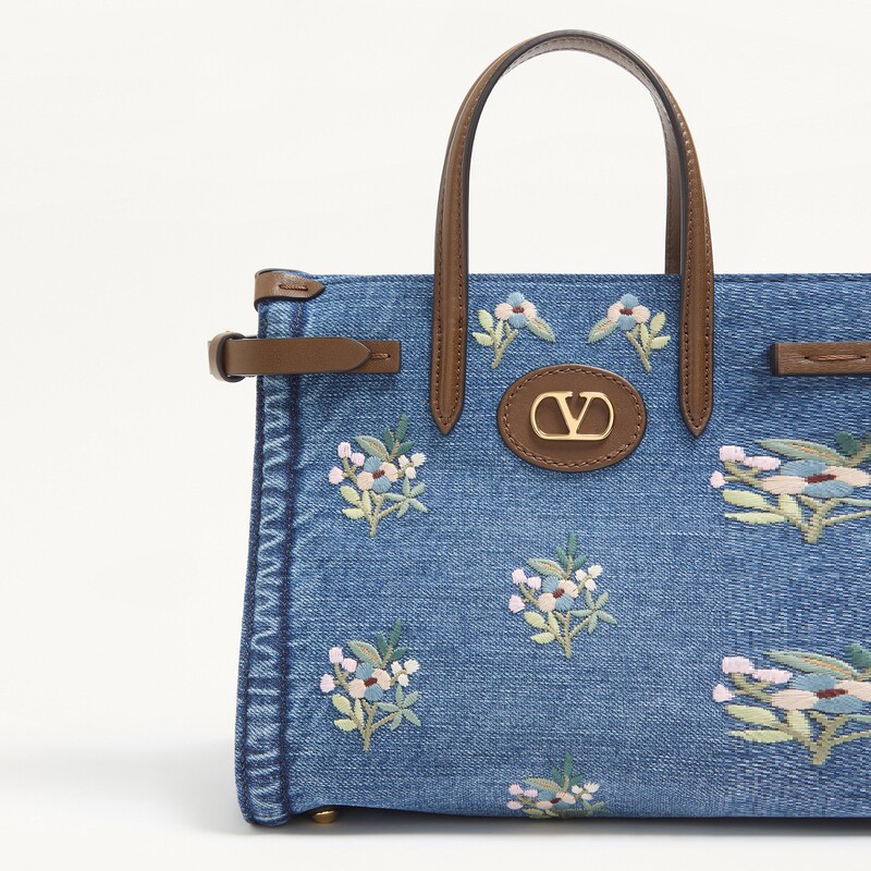华伦天奴VALENTINO女士 新品 上市 小号刺绣牛仔手袋 ANTIBES由