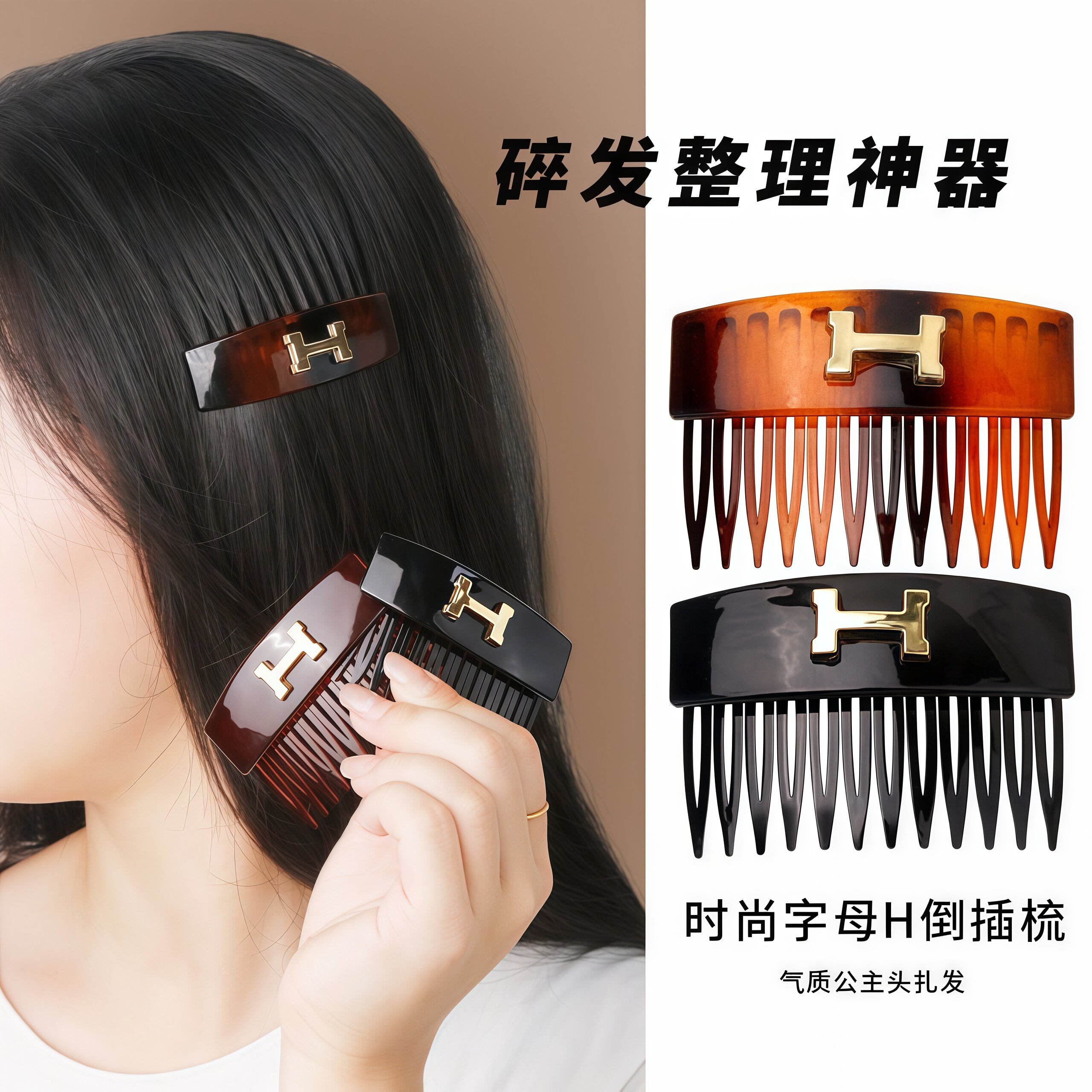 为您提供商品韩系H字母齿梳简约百搭高级感蓬松公主头刘海倒插梳碎发整理神器的详细介绍,